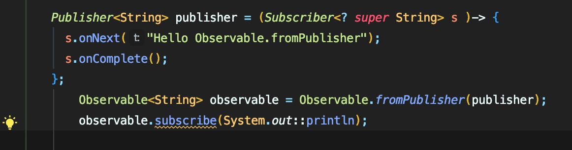 Observable에서 제공하는 fromXXX() 함수 계열의 마지막 입니다!!! Publisher 는 자바 9 의 표준인 FlowAPI의 일부입니다