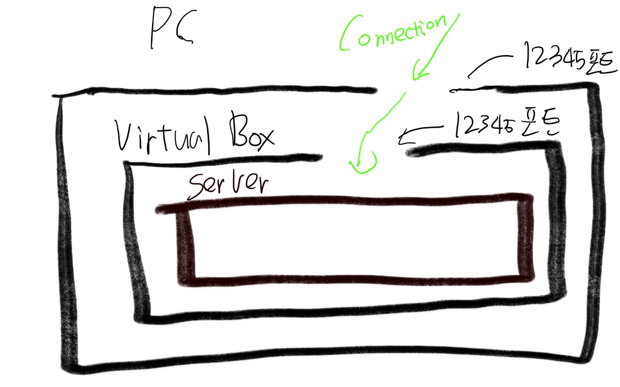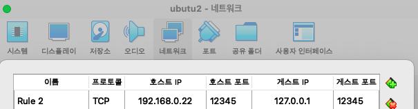 그렇다면 내부 포트 는 Virtual Box 의 12345 포트 를 향함을 의미하는 것입니다!