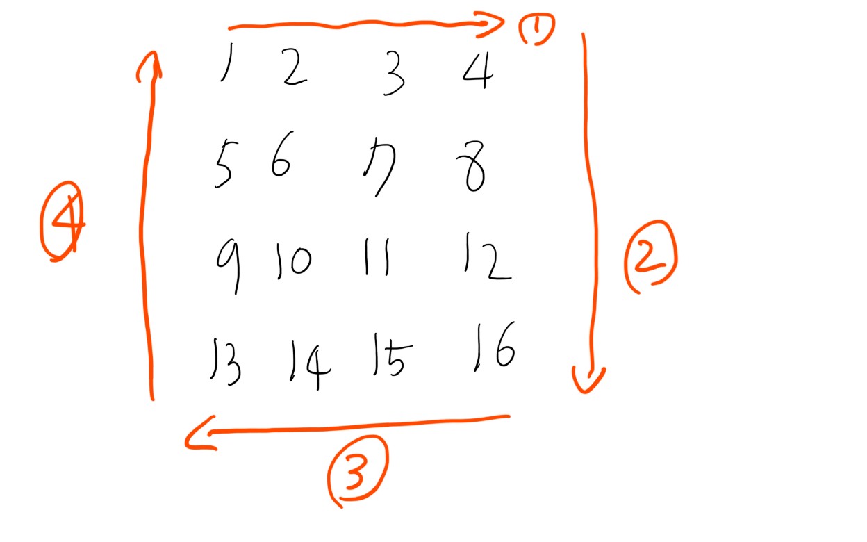 - 처음에 행렬에는 가로 방향으로 숫자가 1부터 하나씩 증가하면서 적혀있습니다.