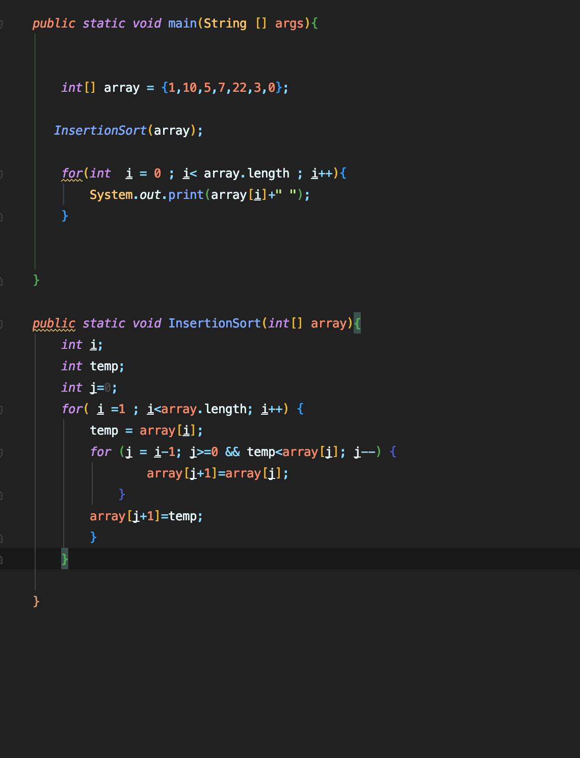 다음은 Insertion sort 의 자바 코드 입니다