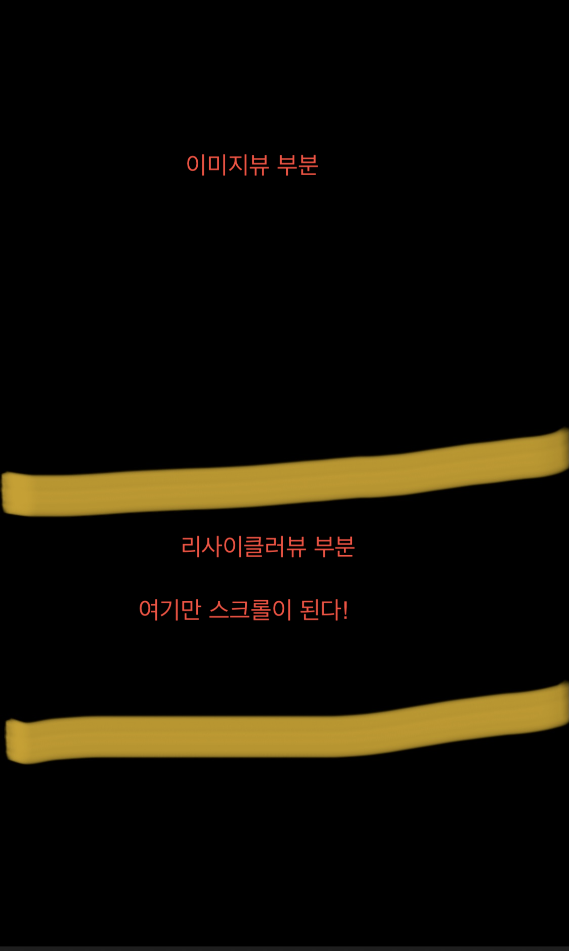 이렇게 하면 화면 상단에 있는 이미지는 내려가지 않고 스크롤이 되는 부분은 리사이클러뷰 부분만 스크롤이 되는 문제가 발생하여
