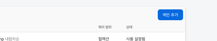 색인 추가 버튼을 눌러서 색인을 추가하시면 됩니다 !