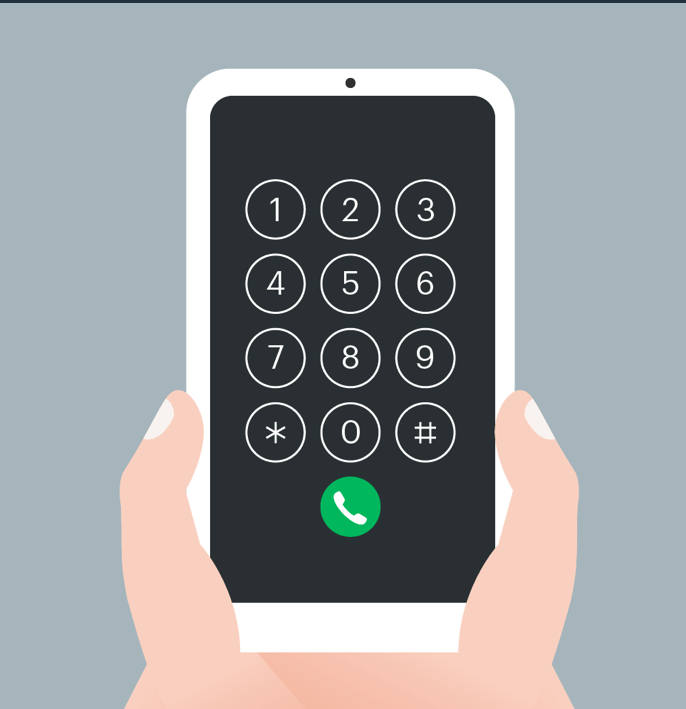 스마트폰 전화 키패드의 각 칸에 다음과 같이 숫자들이 적혀 있습니다.