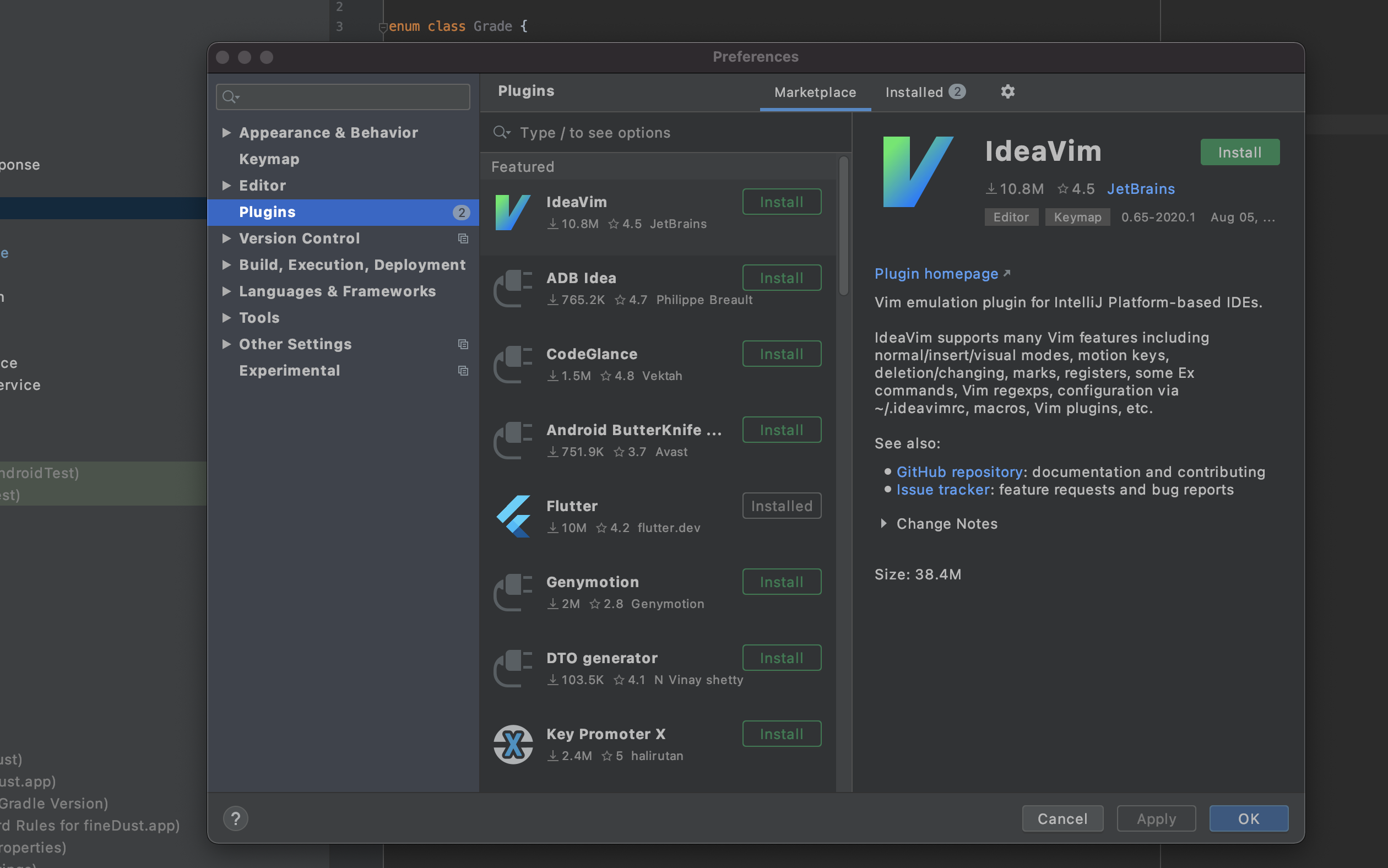 안드로이드 스튜디오 에서 Preferences 들어가서 Plugin 탭을 누릅니다!