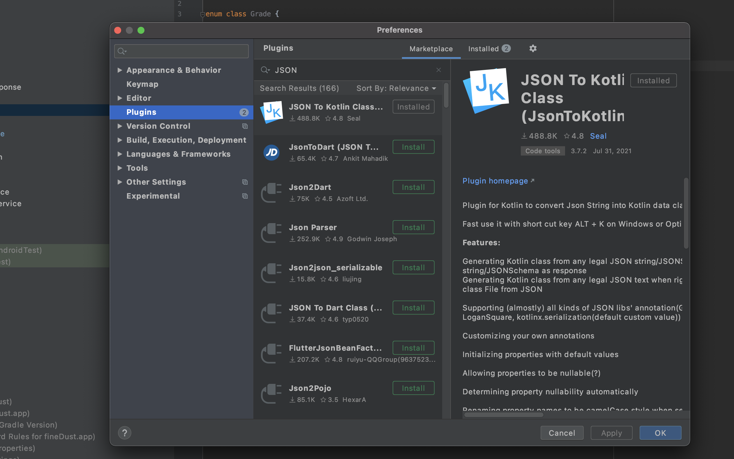 JSON TO Kotlin 이란 플러그인 인대 이 플러그인 은