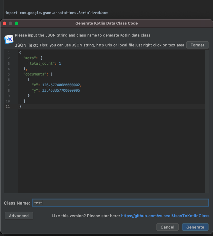 JSON To Kotlin 플러그인 자동으로 Data Model을 만들자 ! 개발 소요 시간 단축 본문